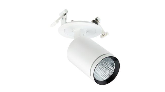 Compact, track projector, Αλουμίνιο, Λευκό, Signal white (RAL9003), Μονάδα DALI ρύθμισης έντασης, συμβατή με το σύστημα Intaract και με τη δυνατότητα Visual Light Communication (VLC) ενεργοποιημένη., 4900 lm, 39 W, 133 lm/W, 3000 K, (0.434,0.403)<3, Μεταλλικός ανακλαστήρας υψηλής ανακλαστικότητας, οβάλ - κάθετης δέσμης, Οπάλ, Πολυμεθυλομεθακρυλικό, IP20 | Με προστασία για δάχτυλα, IK02 | 0,2 J Τυπικό, Κατηγορία ασφαλείας ΙΙ, Ράγα 3C